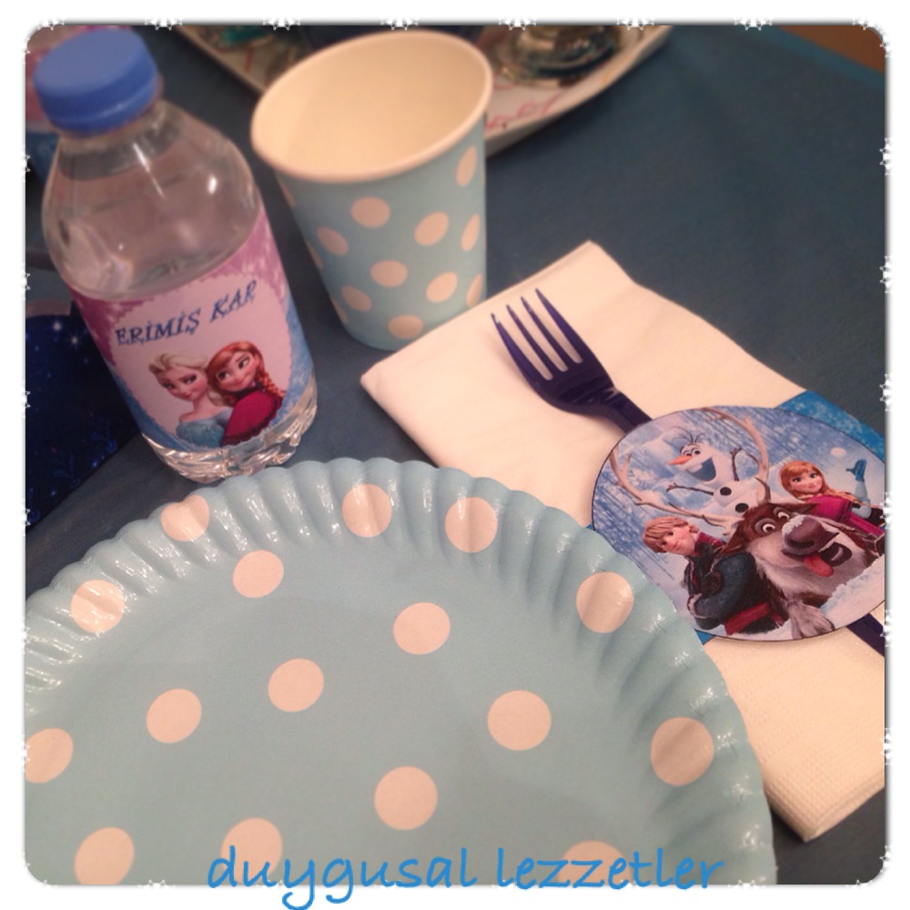 Haftasonu en yakın arkadaşımın kızının doğumgünü vardı. Benden Karlar Ülkesi konseptinde sunumlar hazırlamamı istedi.Malum bu ara kız çocuklarının favorisi Karlar Ülkesi.Değişik birşeyler denemeye karar verdim. Kurabiyelerimi herzamanki gibi şeker hamurundan değil de royal icingle hazırlamak istedim.Sonuç gayet başarılı oldu.Mavi-beyaz bezelerden oluşan bir Karlar Ülkesi Ağacı hazırladım.Tabi ki olmazsa olmaz cupcakeler limonlu ve çikolatalı olarak hazırladığım cupcakeleri şekerhamurundan kartaneleri ile süsledim.Gelen misafirlere hediye olarakda minik kartanesi kurabiyeler yapıp bunları süslediğim kavanozlara koydum.Ayrıca konsepte uygun etiketlerle minik çikolataları kapladım. Kavanozda kurabiye ve çikolataları hediyelik keseler koydum gerçekten çok şık oldular.Bitti mi? Hayır.....En zorlarından bir tanesi de buzul sarkıtlar hazırlamaktı.Çünkü hazırlanma süresi yaklaşık 10 gün sürüyor. Altıncı günde sarkıtlarım oldukça güzel gözüküyordu eğer tam süreyi doldursalardı nasıl olurlardı hayal bile edemiyorum :) Küçük un kurabiyeleri yaptım pudra şekerine bulayınca işte size kartopları, sunumda da çok güzel durdular. Sunumu espirili bir hale getirmek herzaman elimizde. Hayal gücünüzü kullanın. Su şişelerine etiket yaptım ama etiketin üstüne de "Erimiş Kar" yazdım çocuklar bu detaya bayıldılar. Bitmedi hala devam.... Mavi renkte jöleler yaptım bu jöle buz tutmuş okyanusu temsil etti üstünede farklı boyutlarda beyaz marshmellowlar koydum bunlarda okyanus üzerindeki buz küpleri oldu. Sunum inanılmazdı.